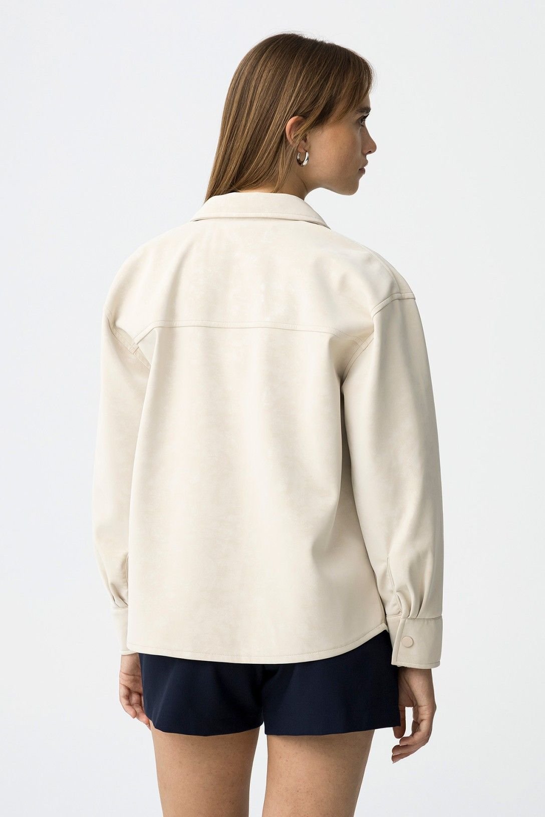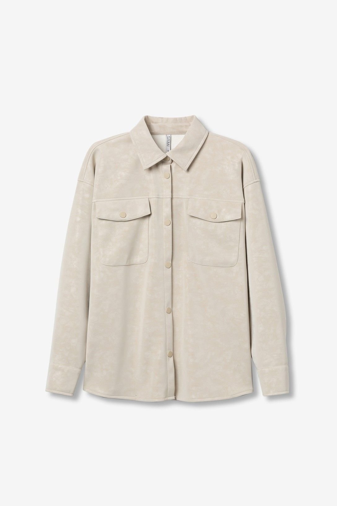 Camisa relaxed fit, com cola em aba e manga comprida com fecho em botões de mola e aplicação de bolsos em chapa. Textura aveludada all over.