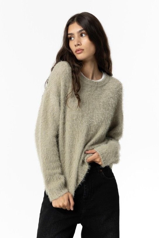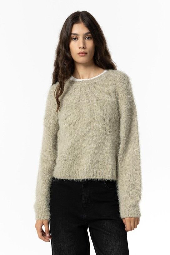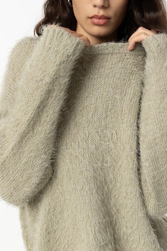 Camisola com decote redondo e manga comprida. Pormenor de tecido com estrutura suave ao toque.