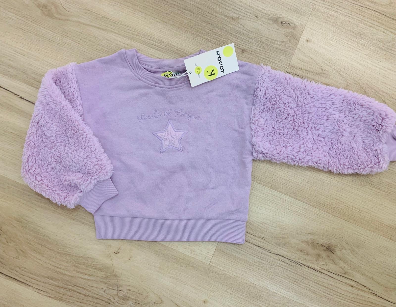 Camisola cardada com pêlo nas mangas.