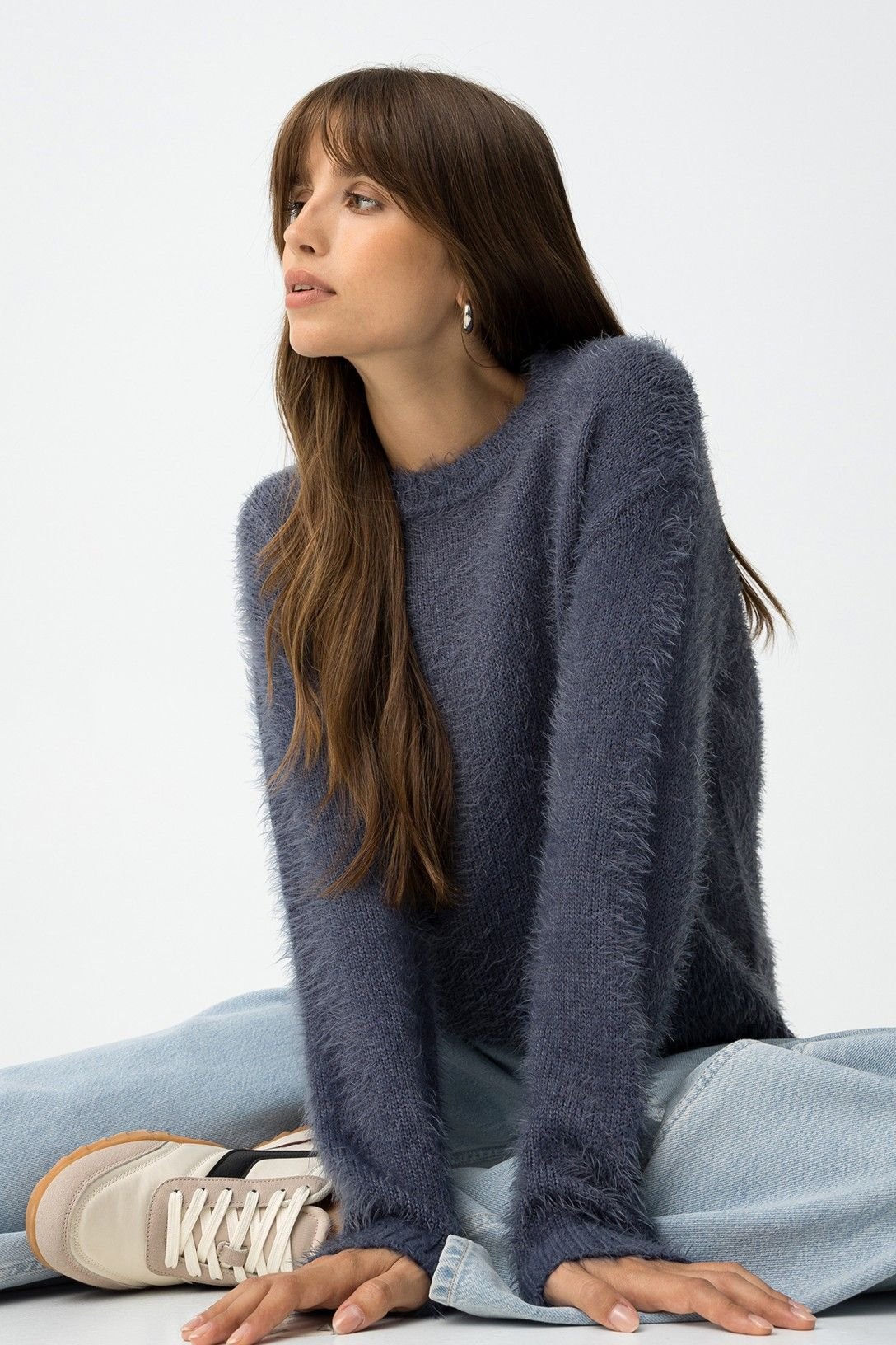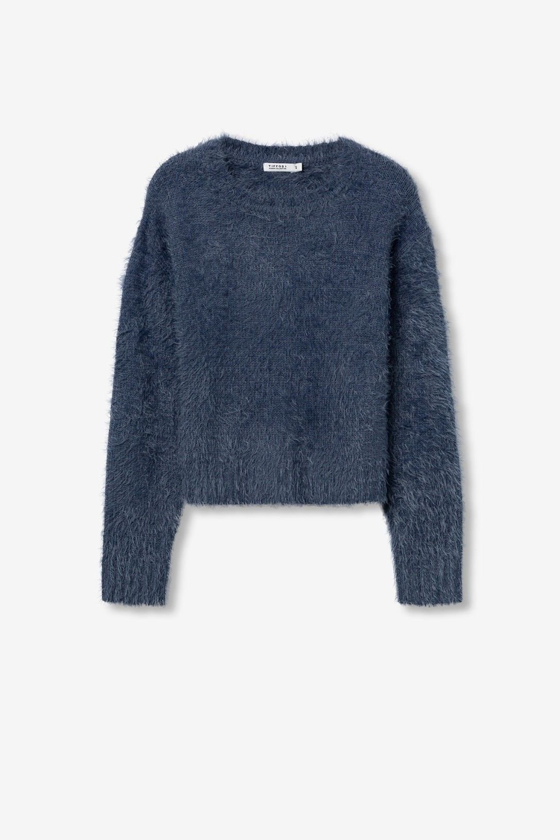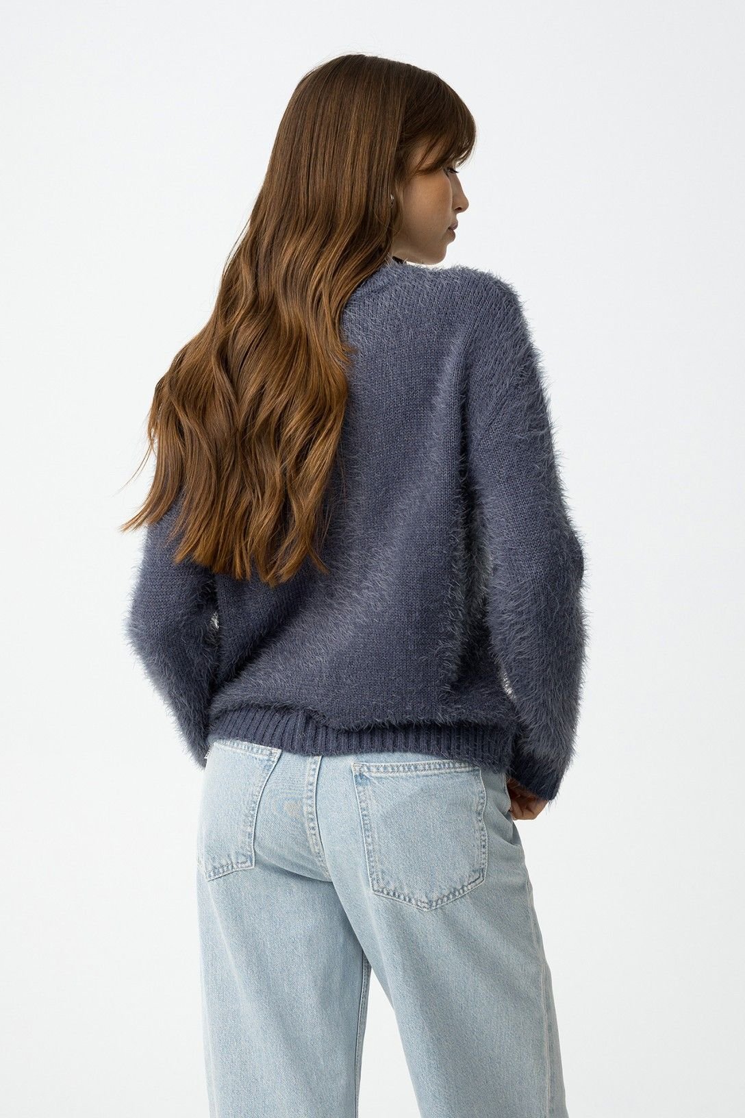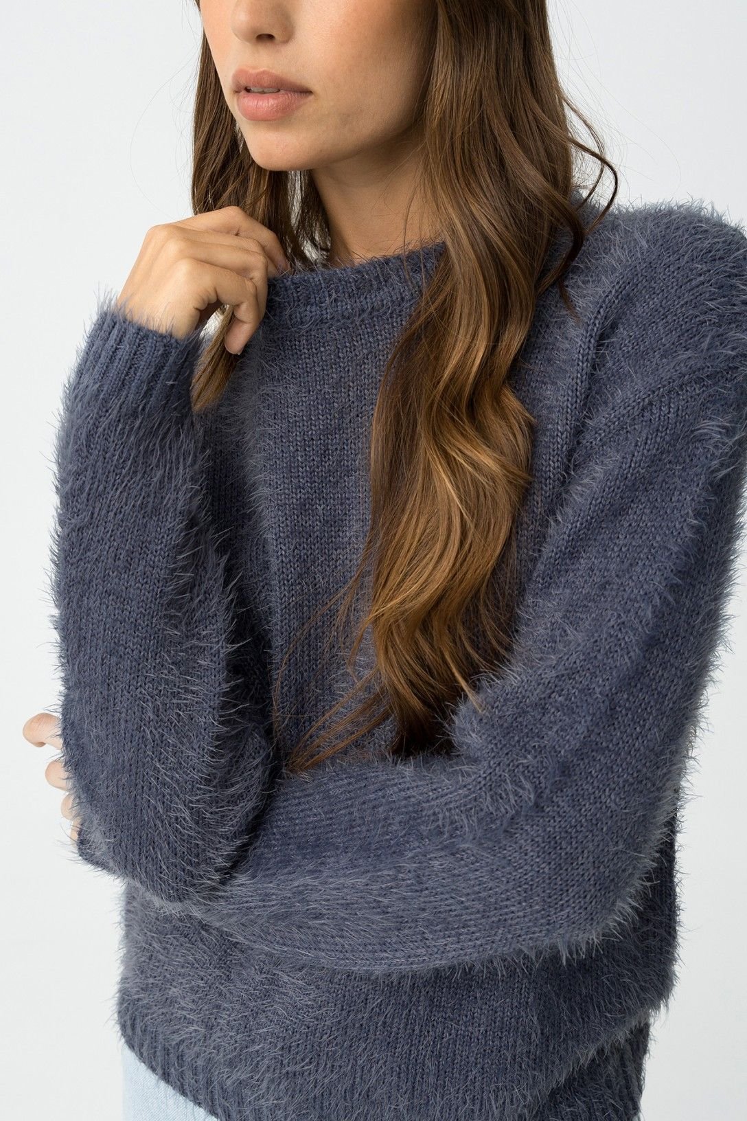 Camisola regular fit de malha felpuda, decote redondo e manga longa.