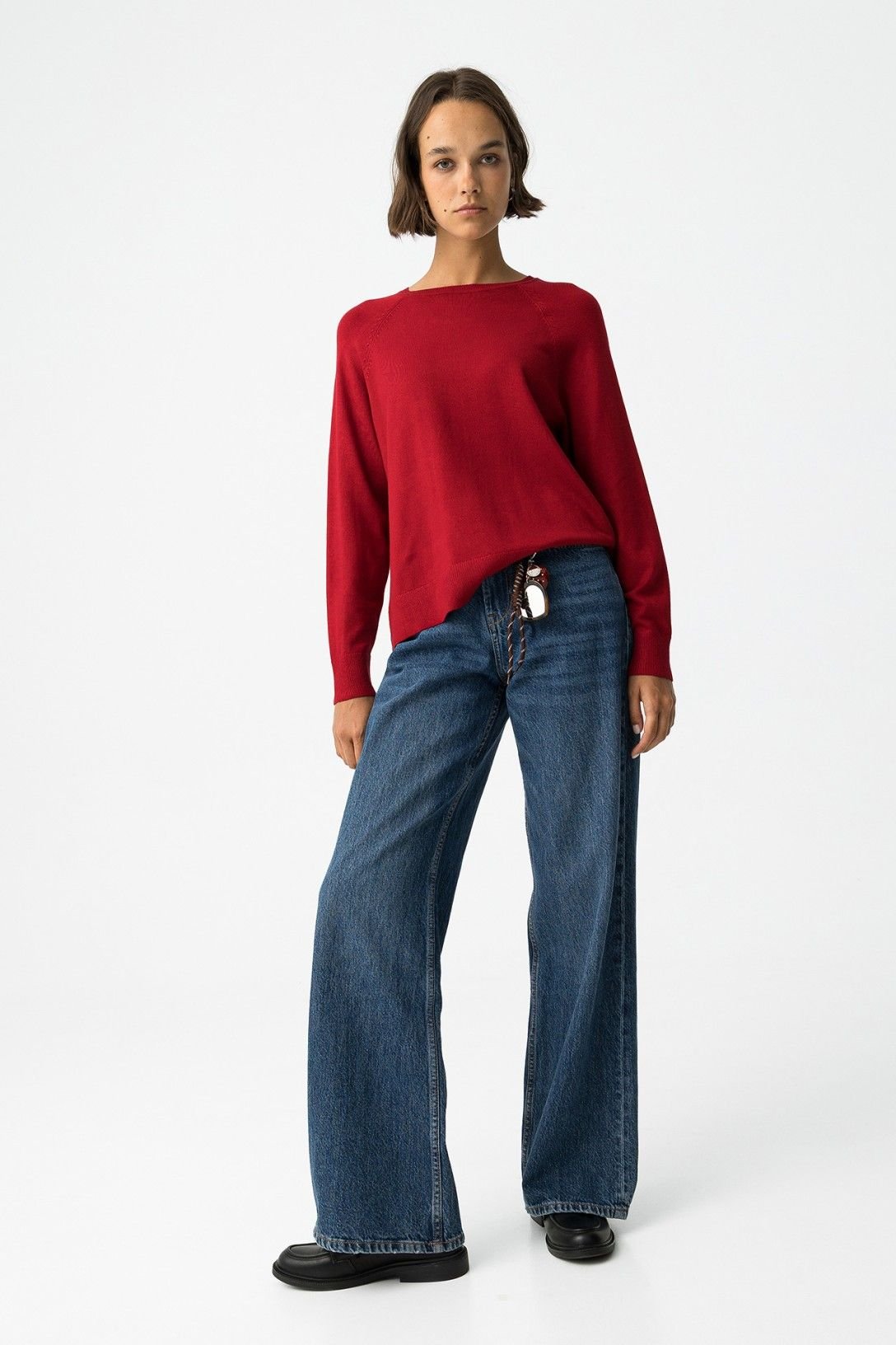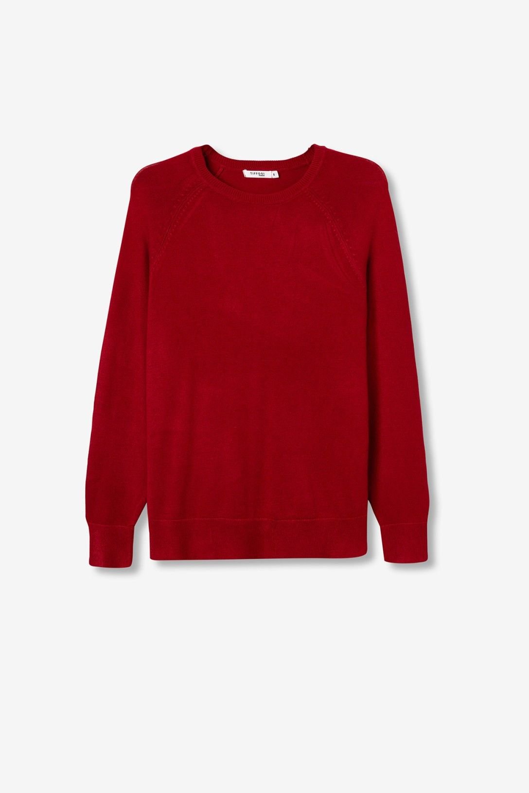 Camisola regular fit de malha lisa, com decote redondo, manga raglã longa e bainha com fendas laterais.