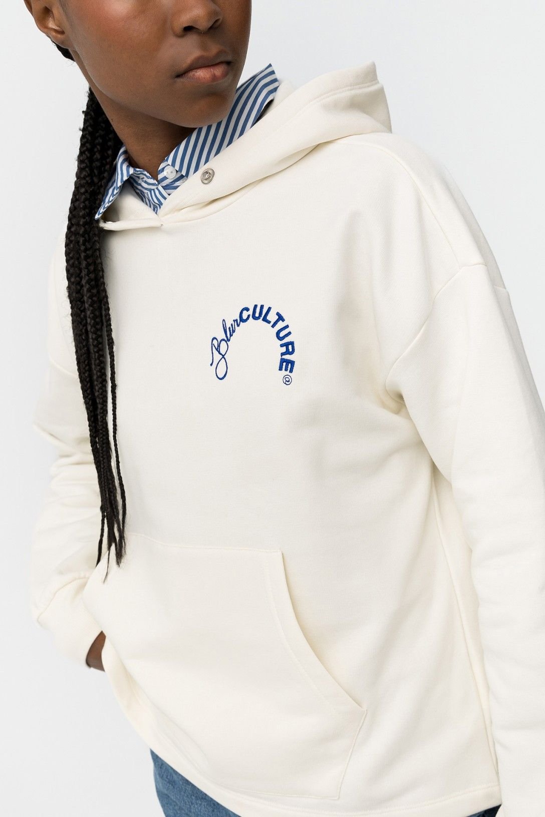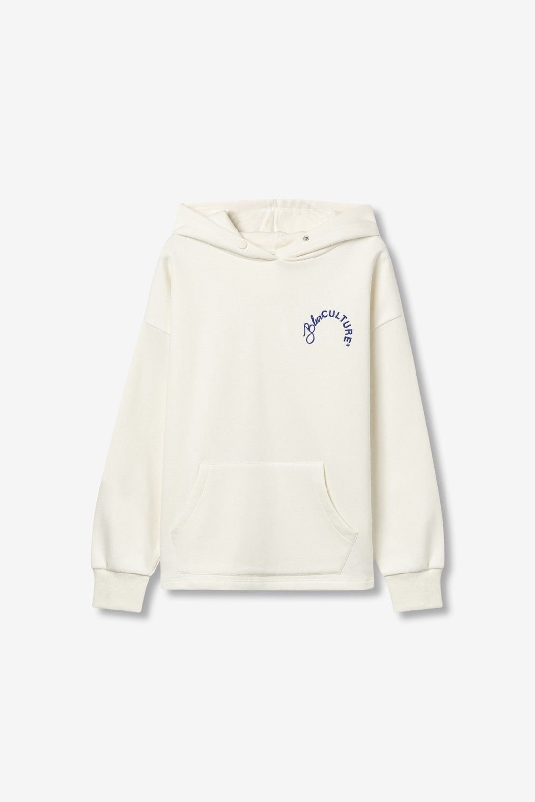 Hoodie relaxed fit de manga comprida e capuz. Bordado frontal. Bolsos tipo canguru. Punhos em rib