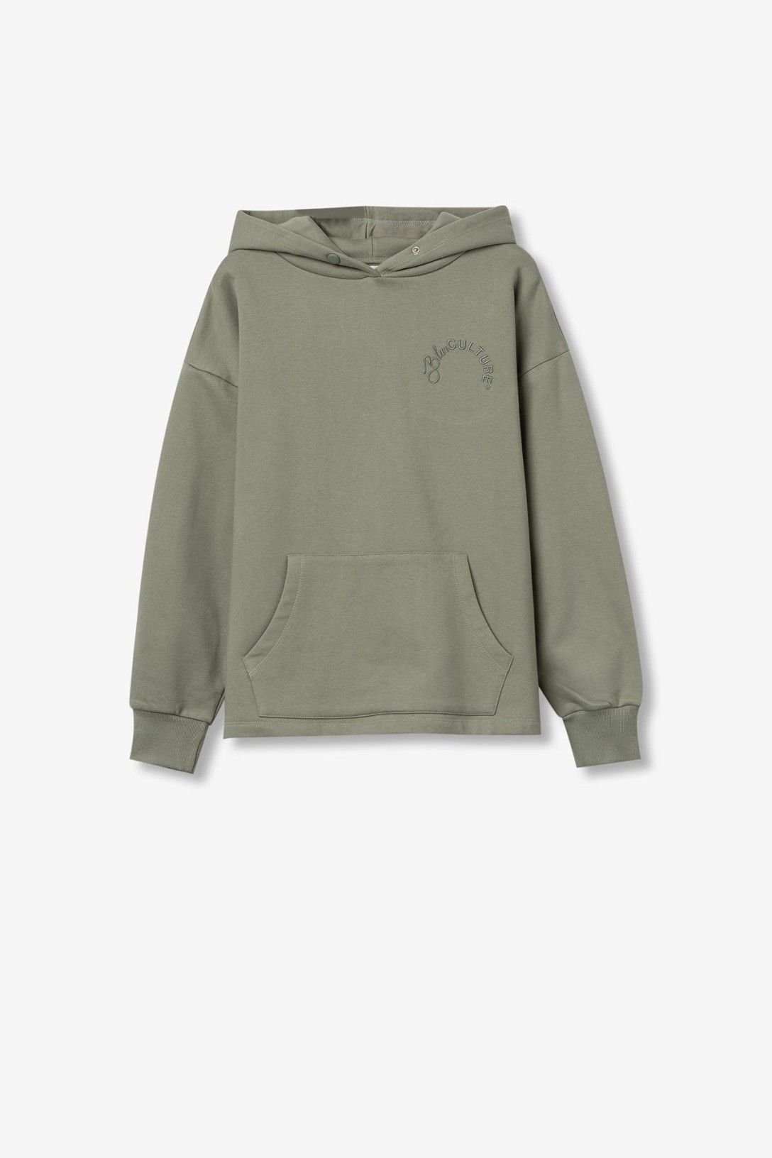Hoodie relaxed fit de manga comprida e capuz. Bordado frontal. Bolsos tipo canguru. Punhos em rib