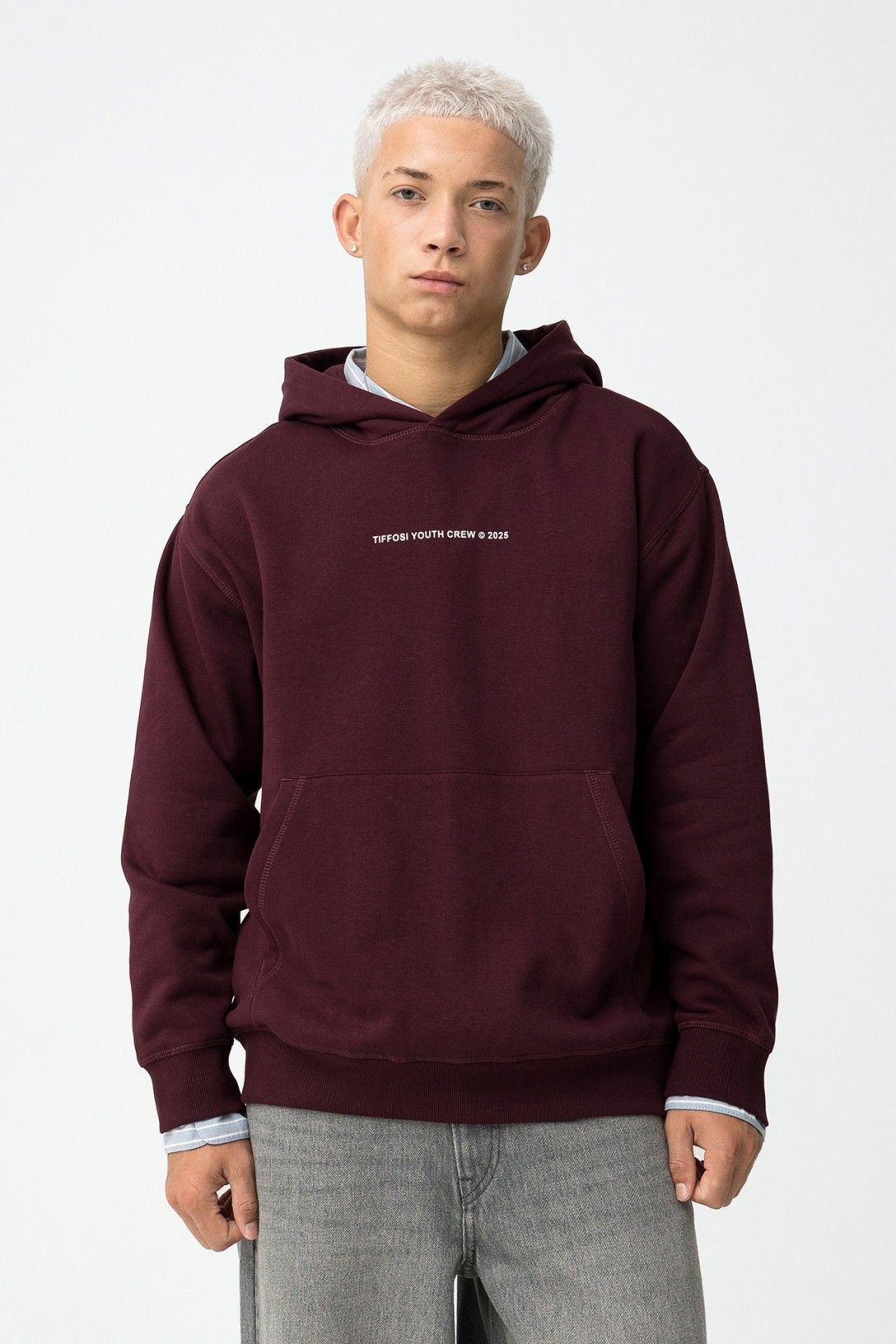 Sweat relaxed fit com capuz. Bolso canguru. Punhos e bainha em rib. Estampado pequeno no peito e bordado na parte de trás do capuz.